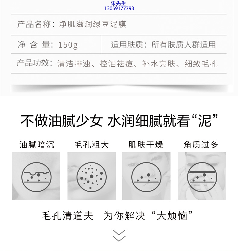 雅慕诗婷_泥膜深层清洁补水保湿绿豆泥膜 泥膜oem/OEM加工贴牌
